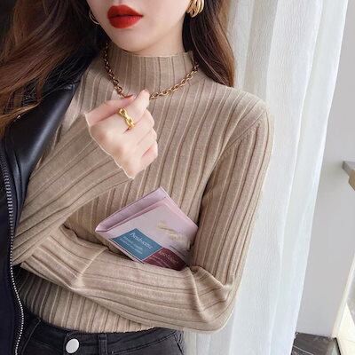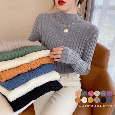 ベーシックニット リブニットトップス プチハイネック人气 新作