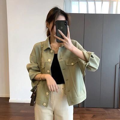 LA PELLEアウター 2024 春秋新作 クラッシュカラー ラペル ワークウェア カジュアル デザイン 通勤 ショート アウター レディース トップス 百掛け 韓国ファッション