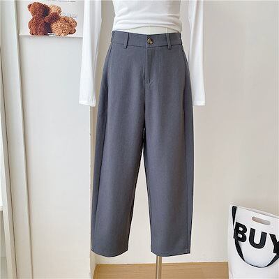 テーパードパンツ 2024 秋 カーキ スーツパンツ レディース ワイドルーズ ワイドパンツ ストレートパンツ 韓国