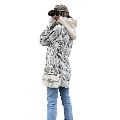 アウター ヨーロッパとアメリカ 婦人服 秋冬新作 フード付き ルーズ チェック柄 ボタン シャツ ジャケット?韓国