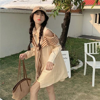 新作ゆったり シャツ ワンピース レディース デザイン感 韓国ファッション