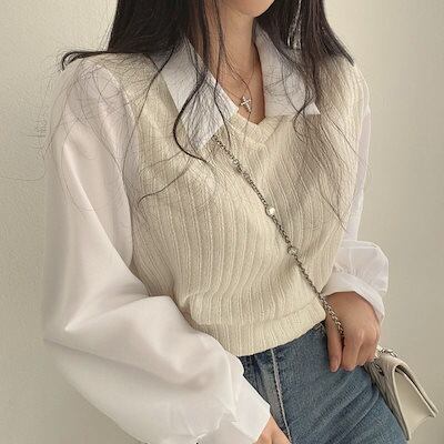 今っぽシアーシャツ 2024新作 韓国chic秋レトロフレンチ シャツ 開襟 レディース 通勤 ニットトップス