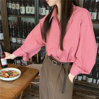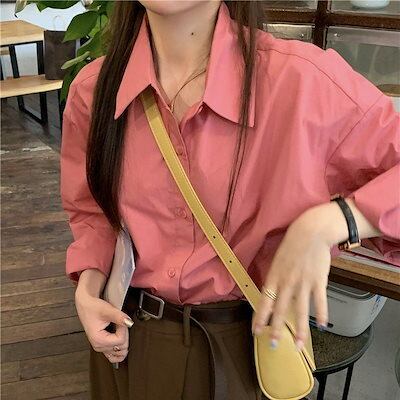 今っぽシアーシャツ 2024年新作 アメリカン レトロ ピンク シャツ レディース 通勤 おしゃれゆったり長袖 トップス