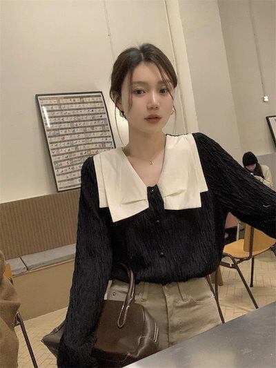 2024秋の新作 今っぽシアーシャ ツ ブラック シャツ シックVネック トップス フレンチ 通勤 上品