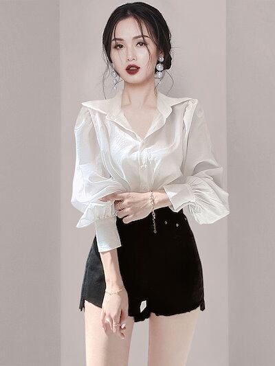 2024秋の新作小柄 今っぽシアーシャツ 通勤 上品 ブラウス Tシャツ トップス シャツ