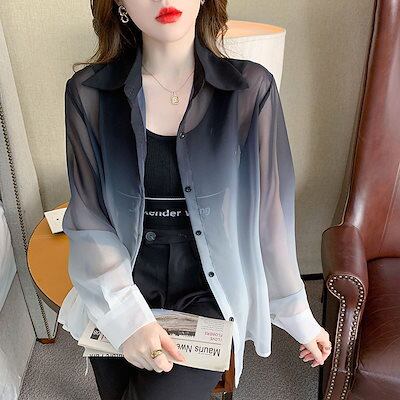今っぽシアーシャツ新作フレンチ ブラウス Tシャツ トップス シャツ OL ゆったり 体型カバー 通勤 上品