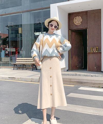 韓国 人気 新作 ニットスカート ボタン飾り Aライン 厚手 ハイウエスト レディース 秋冬 ロングスカート タイトスカート