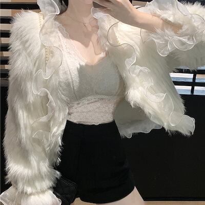 毛皮アウター フェイクファー アウター 2024新作 韓国ファッションレディース秋冬アウター 厚手ウールコート防寒 裏起毛ジャケット可愛いジャケット