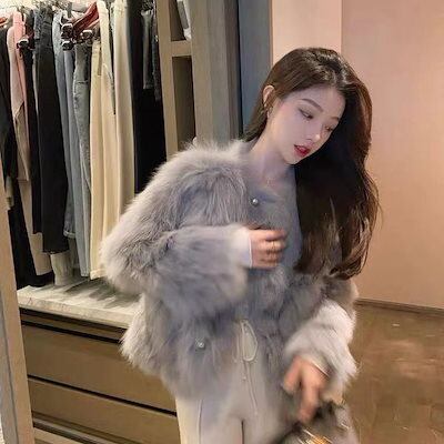 アウター 秋冬 2024新作 フェイクファー アウター 保温 ファッションファーコートアウター レディース 秋冬ゆったりニットボタンシングルブレスト