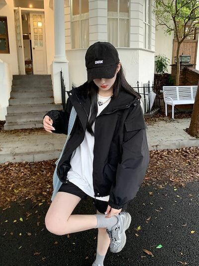 パーカー 韓国 スタイルアップ シルエット アウター カジュアル フード付きファッションパーカー サイズ 大人 ゆったりライクストリートフルトラックカジュアルフーディー秋かわいい