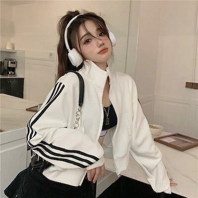 パーカー 秋 韓国 かわいい レディース アウター ブルゾン お出かけ ブラック ライトカーキ アウター長袖セクシートップスサイド冬カジュアルファッション系お出かけフル丈トラック