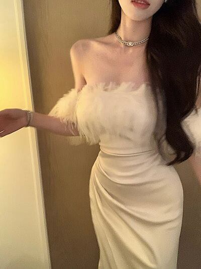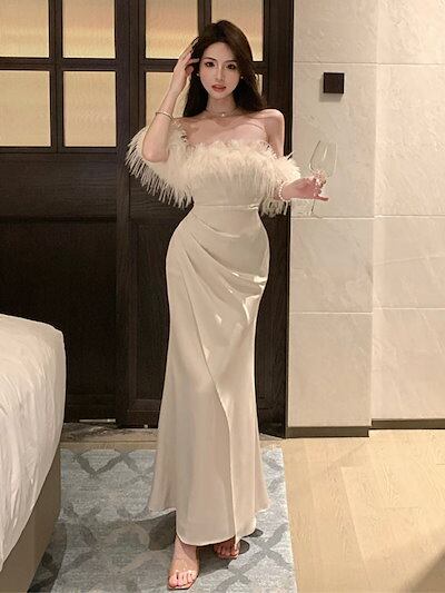 人気 ドレス パーティードレス サテンイブニングドレススカートのワンショルダードレス女性のシニア感覚は気質フィッシュテールのロングスカートをウェスト
