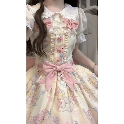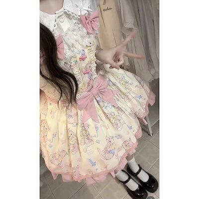 新作 コスプレロリータ ドレス かわいい ベビーカラー シャツ リボン本 レース ストラップスカート セット二次元 学院祭用