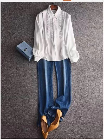 新作 人気 長袖ブラウス 2024 白 長袖 シャツ 女性 初秋 新作 白シャツ