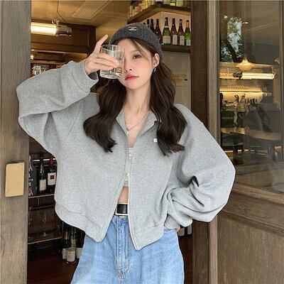 2024 新作秋 パーカー?大きいサイズ ショート かわいい トップス アウター ショート フード付き ショート お出かけフルトラックハイ ストリート アウター 長袖 セクシー トップス