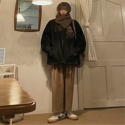 2024秋冬新作 韓国ファッションコーデュロイ ワイドレッグパンツ レディース シンプル ゆったり 大きいサイズ リラックス カジュアル ストレートパンツ