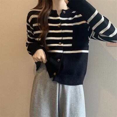 【本日限定】 ストライプのデザイン感セーター秋冬新作ゆったりレトロトップス ニットカーディガンコート ファッション 快適 アウター通勤