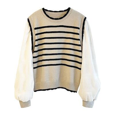 【Qoo10最安値挑戦!!!】ストライプニット 秋の新作 ニットトップス トップス ファッション 快適 アウター通勤