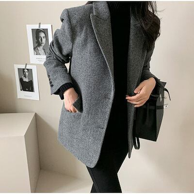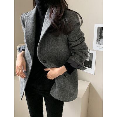 2024年秋冬物ファッション 冬アウター ジャケット韓国 ゆったりウールのブレザー 無地 コート レディース 通勤 オシャレ 大人