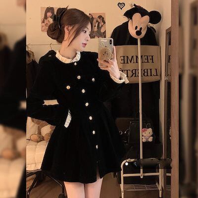 ベルベットワンピース2024新作秋服 長袖 レディース ファッション 新品追加