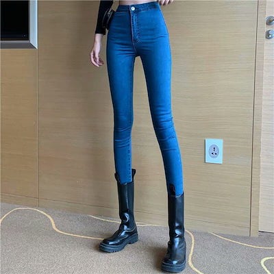 【3日以内出荷】脚長効果!スキニーデニムパンツ スキニー ライトブルー ジーンズ 春秋 ハイウエスト レディース スリム ストレッチ 9分丈パンツ ペンシルパンツ 韓国