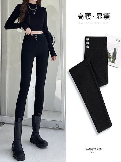 【3日以内出荷】脚長効果!スキニーデニムパンツ 小さな黒いズボン レディース 2024 春と秋 ハイウエスト 薄手 レギンス スキニーパンツ 伸縮性 ボトムス 韓国