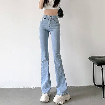 【3日以内出荷】脚長効果!スキニーデニムパンツ マイクロフレア ジーンズ レディース 秋 デザイン ハイウエスト スリム イン ファッション 韓国