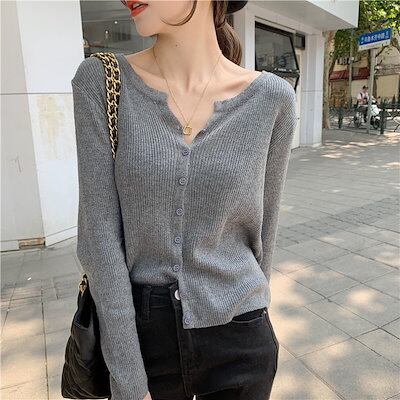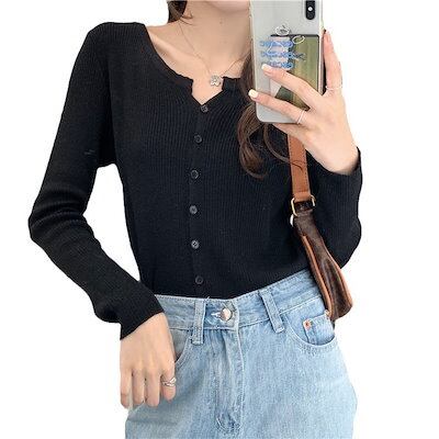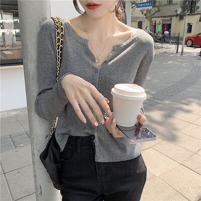 【3日以内出荷】カーディガン Vネック ニット 秋の薄手 長袖 無地 トップス ショート アウター ソフト ジャンパー レディース ジャケット 韓国