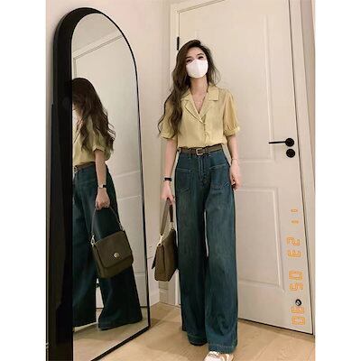 【3日以内出荷】スラックスパンツ デニムパンツ 大きいサイズ ジーンズ レディース 2024 新作 ハイウエスト スリム ゆったり デザイン モップ本 ワイドパンツ 韓国