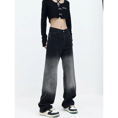 【3日以内出荷】スラックスパンツ 大きいサイズ グラデーション ストレート デニムパンツ ins レディース 秋 ハイウエスト スリム ワイドパンツ ズボン 韓国