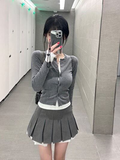 涼しく楽ちんセットアップ 3点セット 2024年の春と秋 カレッジスタイル デザインセンス スリム ニットカーディガン インナーウェア トップス ハイウエスト スカート韓国