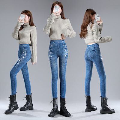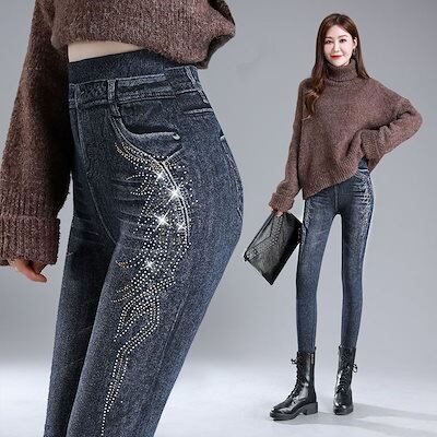 【3日以内出荷】脚長効果!スキニーデニムパンツ ウォータドリル 鉛筆ズボン 新しい パンツ ハイウエスト ラージコード 腰を緩める ばね力 レギンス レディース 韓国