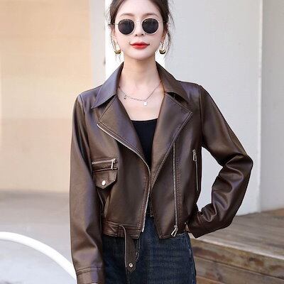 2024 秋 新作ライダースジャケット アウター ゆったり ショート pu レザージャケット 韓国ファッション 流行り トップス ショット丈 革レディース 着痩せコート ジャケット
