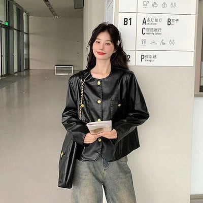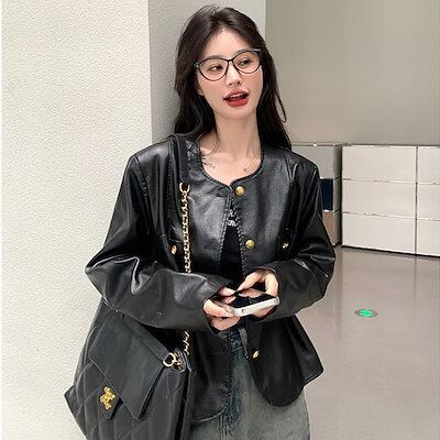 2024 秋 新作ライダースジャケット アウター ゆったり ショート pu レザージャケット 韓国ファッション 流行り トップス ショット丈 革レディース 着痩せ ジャケット