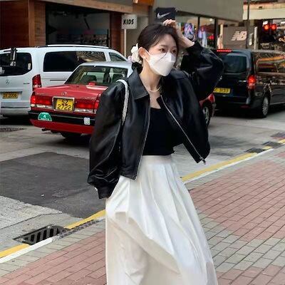 2024 秋 新作ライダースジャケット アウター ゆったり pu レザージャケット韓国ファッション 流行りトップスショット丈 革レディース 着痩せ ジャケット