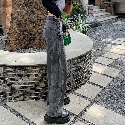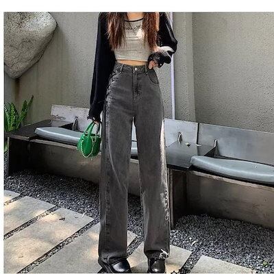 大人気 デニムパンツ 秋 新作 ボトムス ゆったり カジュアルシルエット レッグロングパンツ 学生 ファッション系 レディース 脚長効果 美脚効果