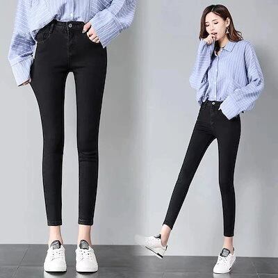 大人気 デニムパンツ 秋 新作 パンツ デザイン感ファッション春ズボンスキニーハイウエスト ロングパンツ/9分丈/8分丈選べるタイトパンツワイドパンツジーンズ カジュアルストレッチ效果 レディース 脚