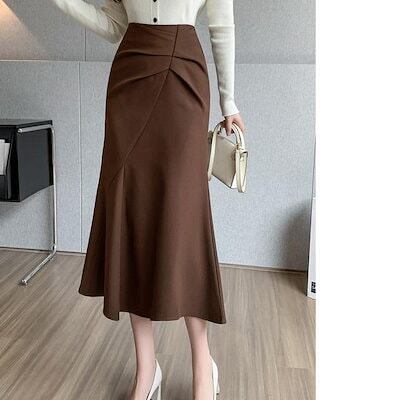 2024 人气 秋 新作 ミディアムスカート ウールのスカート ミディアム A字スカート タイトスカート フレンチスカート 百掛け やせて見える 韓国ファッション 韓国ファッション