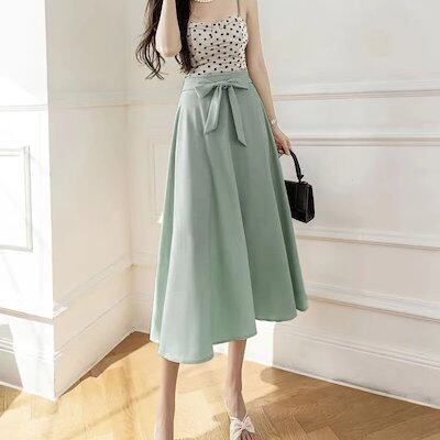 2024 人气 秋 新作 ミディアムスカート ブレザースカート 垂下感 スカート じゅんしょく ワンチップ 百掛け やせて見える 韓国ファッション 韓国ファッション