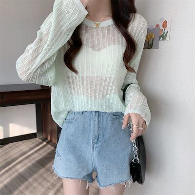 2024新作 怠惰な風 ?薄 tシャツレディース ニットカーデ日焼け防止 UV 日焼け対策 トップス アウター ゆったり 透かし彫り紫外線対策 Tシャツトップス