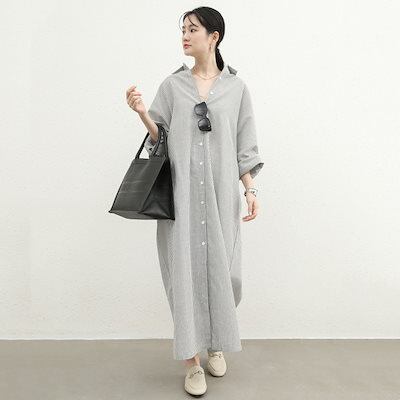 2024新作 大きめサイズ 韓国ファッション シャツワンピース Vネック シャツワンピースロングワンピース リゾートワンピース Tシャツワンピースキャミワンピース 母の日のプレゼント
