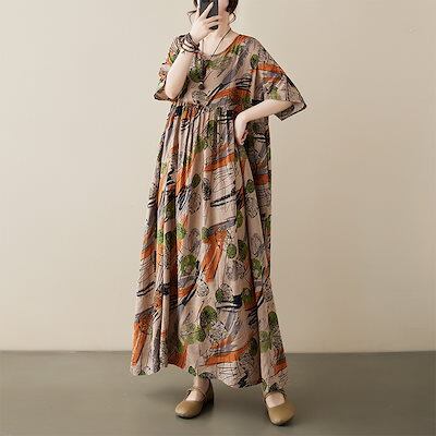 2024新作 丸ネック シンプル ワンピース 大きめサイズ おしゃれ シャツワンピース ロングワンピー 韓国ファッションキャミワンピース 母の日のプレゼント