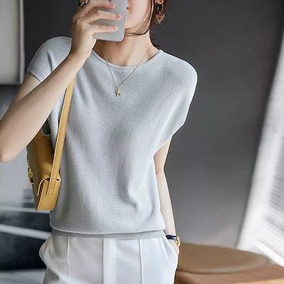 2024新作 シンプル Tシャツ 半袖 レディース ロングTシャツ ニットカーディガン 丸ネック おしゃれ