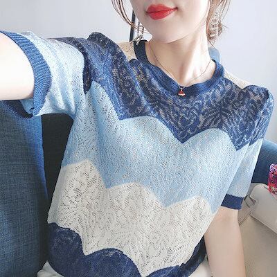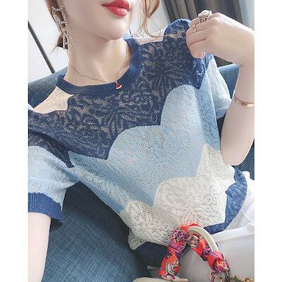 【2枚購入で 2oo円OFF!】2024新作 2024新作 半袖 シンプル インナー 透かし彫りトップス ニット TシャツTシャツカットソー 丸ネック おしゃれインナー 透かし彫りトップス ニッ