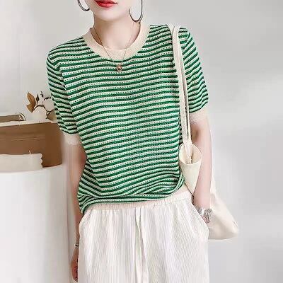 【2枚購入で 2oo円OFF!】2024新作 シンプル インナー 透かし彫りトップス ニット TシャツTシャツカットソー 丸ネック 半袖