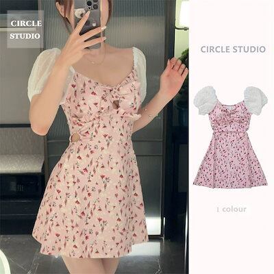 軽薄 バブル袖 水着 2024韓国ファッション ワンピース水着 カップ付きインナー