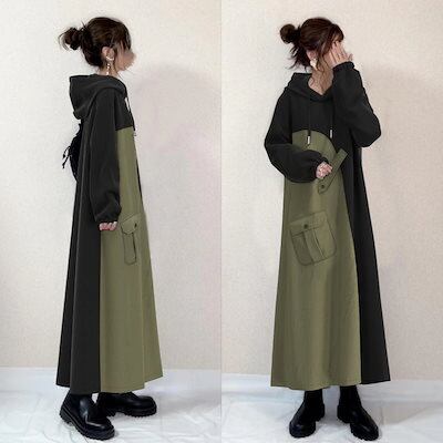 新作 シンプル 可愛い ワンピース ロングワンピース フード付き ワンピース ワンピース 秋冬 長袖 着痩せ Tシャツワンピース 大きめサイズ