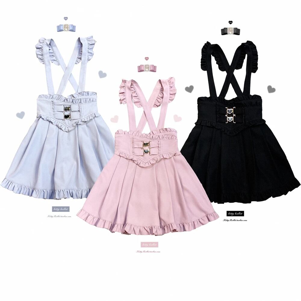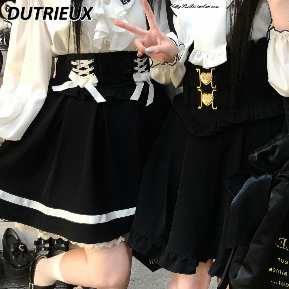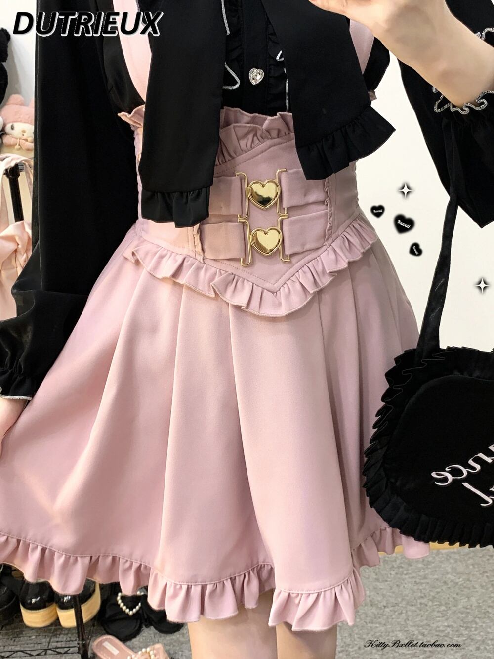 女性のためのロリータフリルプリーツスカート、女の子のためのハイウエストストラップスカート、柔らかくてかわいい、手袋ボタン、レースクロス、日本、新しい、秋 T240925141328_02