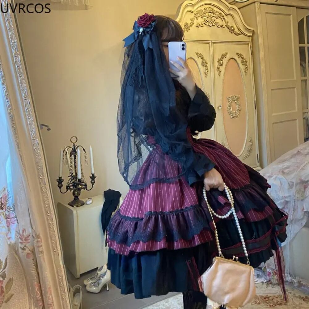 ヴィンテージゴシックロリータJskドレス、女性用、ハロウィーンy2kバットカラー、woウールプリンセスドレス、ヴィンテージパンク原宿パーティードレス T240925141409_08