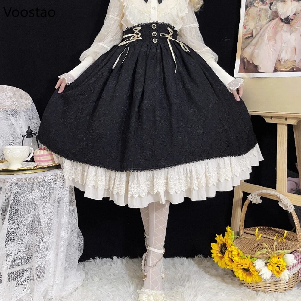 ヴィンテージロリータミディスカート,エレガントなレースのパッチワーク,フリル,イブニングウェア,ゴシックy2k包帯,女性用 T240925141434_01